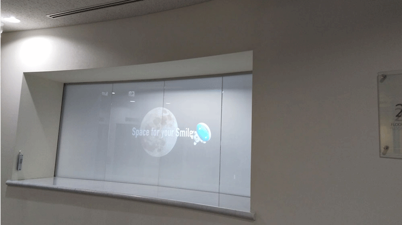 調光フィルム 施工事例 スカパーJSAT様/見学通路